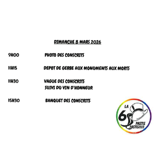 11h30 : vague des conscrits, suivi du vin d'honneur